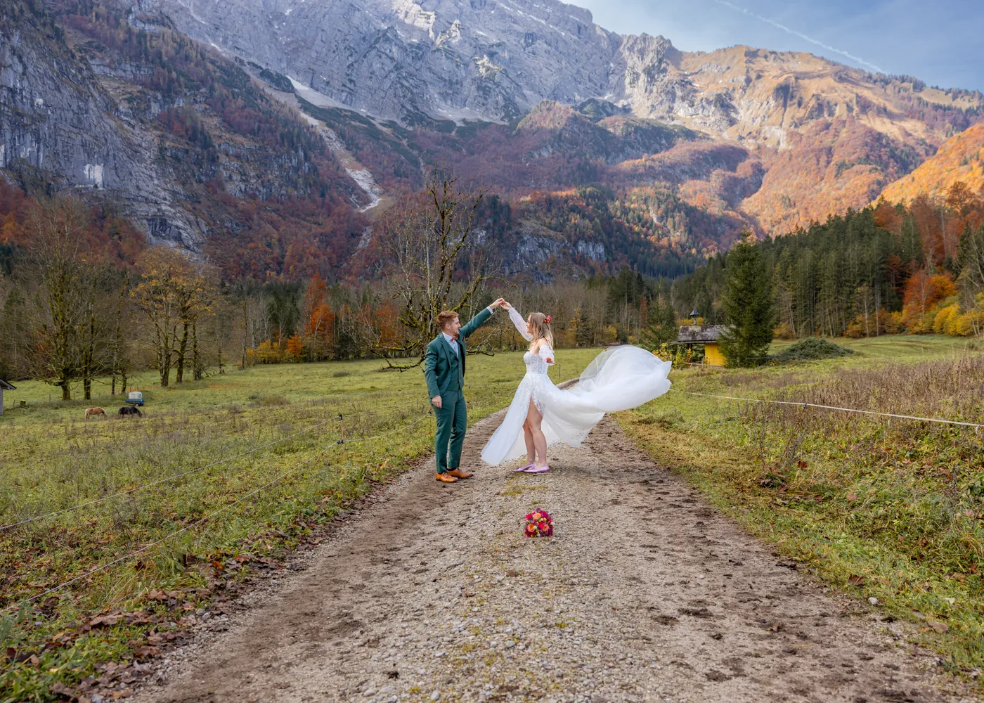 📅 Die beste Uhrzeit: Das Licht ist in den Bergen intensiver als im Flachland. Die goldene Stunde kurz vor Sonnenuntergang sorgt für besonders weiche und warme Bilder. 🌤 Wetter im Blick behalten: In den Alpen kann das Wetter schnell wechseln. Flexibilität für das Shooting ist daher ideal. 🎭 Authentizität bewahren: Ungezwungene und natürliche Fotos sind oft die schönsten. Genießt den Moment, lacht, tanzt und lasst euch von der Umgebung inspirieren!