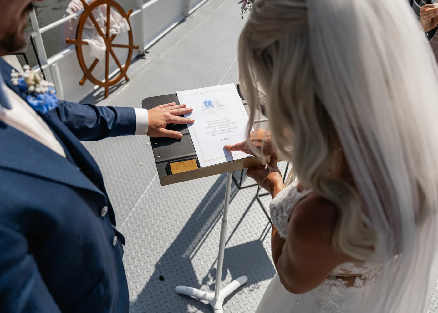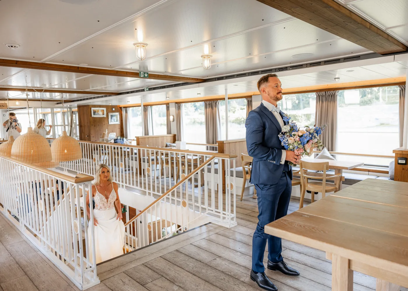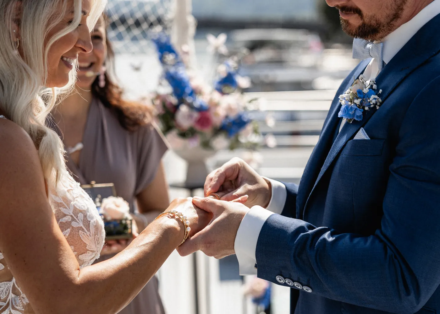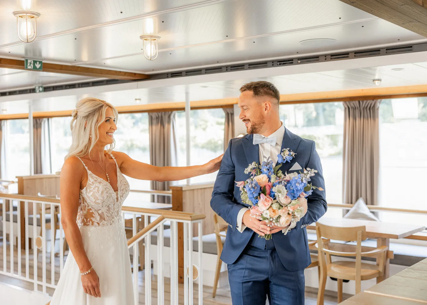 freien Trauung auf dem Barefoot Boat, einem modernen Schiff mit warmem, einladendem Charme. Umgeben vom Wasser der drei Flüsse, goldenem Licht und ihren Liebsten entstand eine Atmosphäre, die leicht, frei und unglaublich herzlich war.