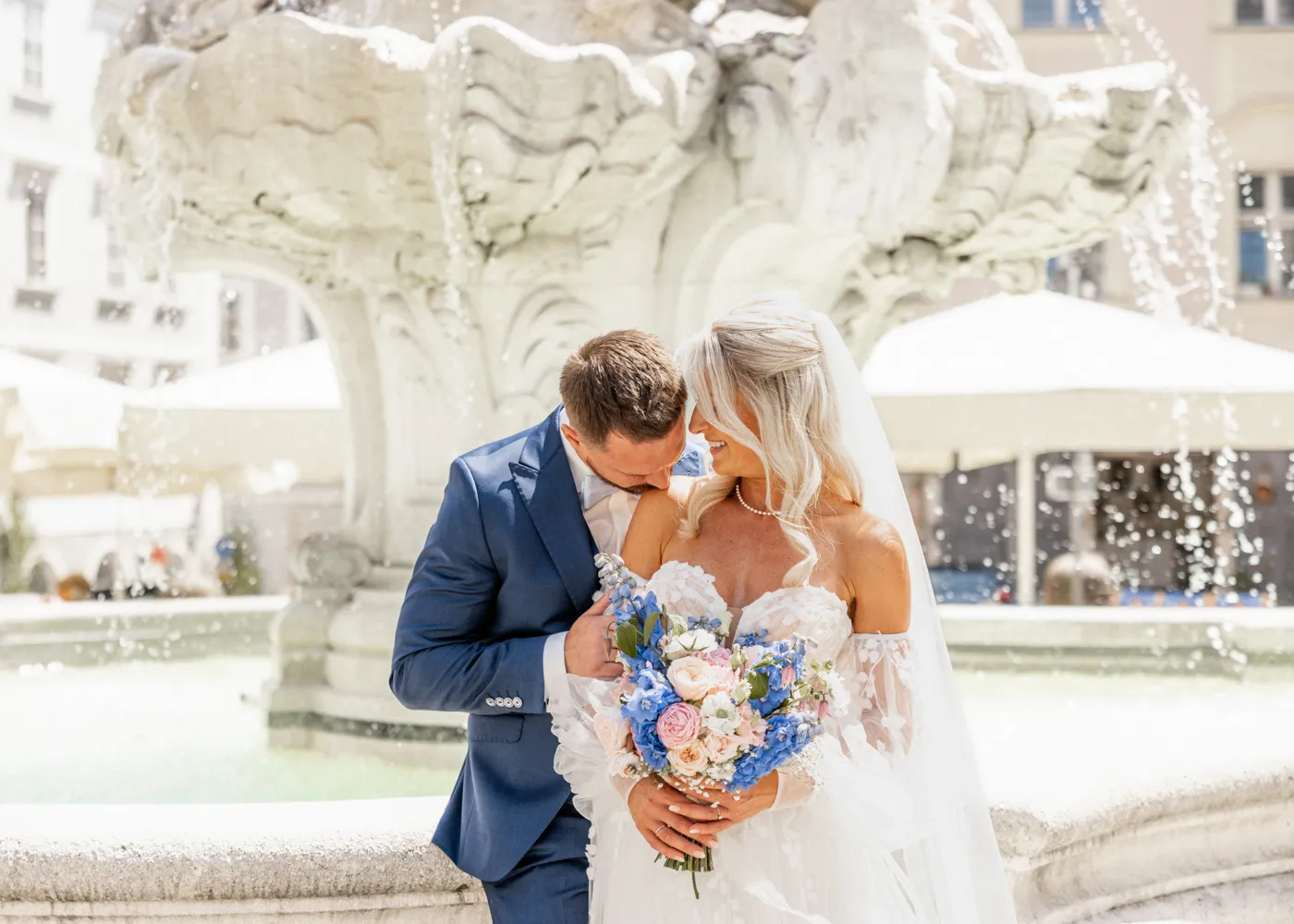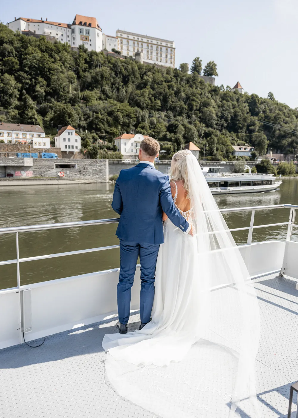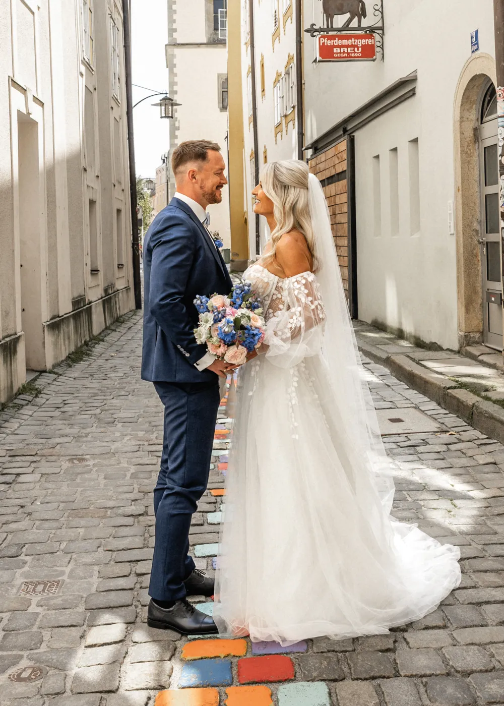 Nach der Fahrt auf dem Barefoot Boat zogen wir gemeinsam durch die malerischen Gassen der Altstadt, vorbei am Wittelsbacher Brunnen, über den Residenzplatz und durch kleine versteckte Ecken, die Passau so einzigartig machen. Diese Orte schaffen eine romantische Kulisse und geben jeder Hochzeitsgalerie einen zeitlosen, natürlichen Look – genau so, wie ich es als Hochzeitsfotograf Passau liebe.