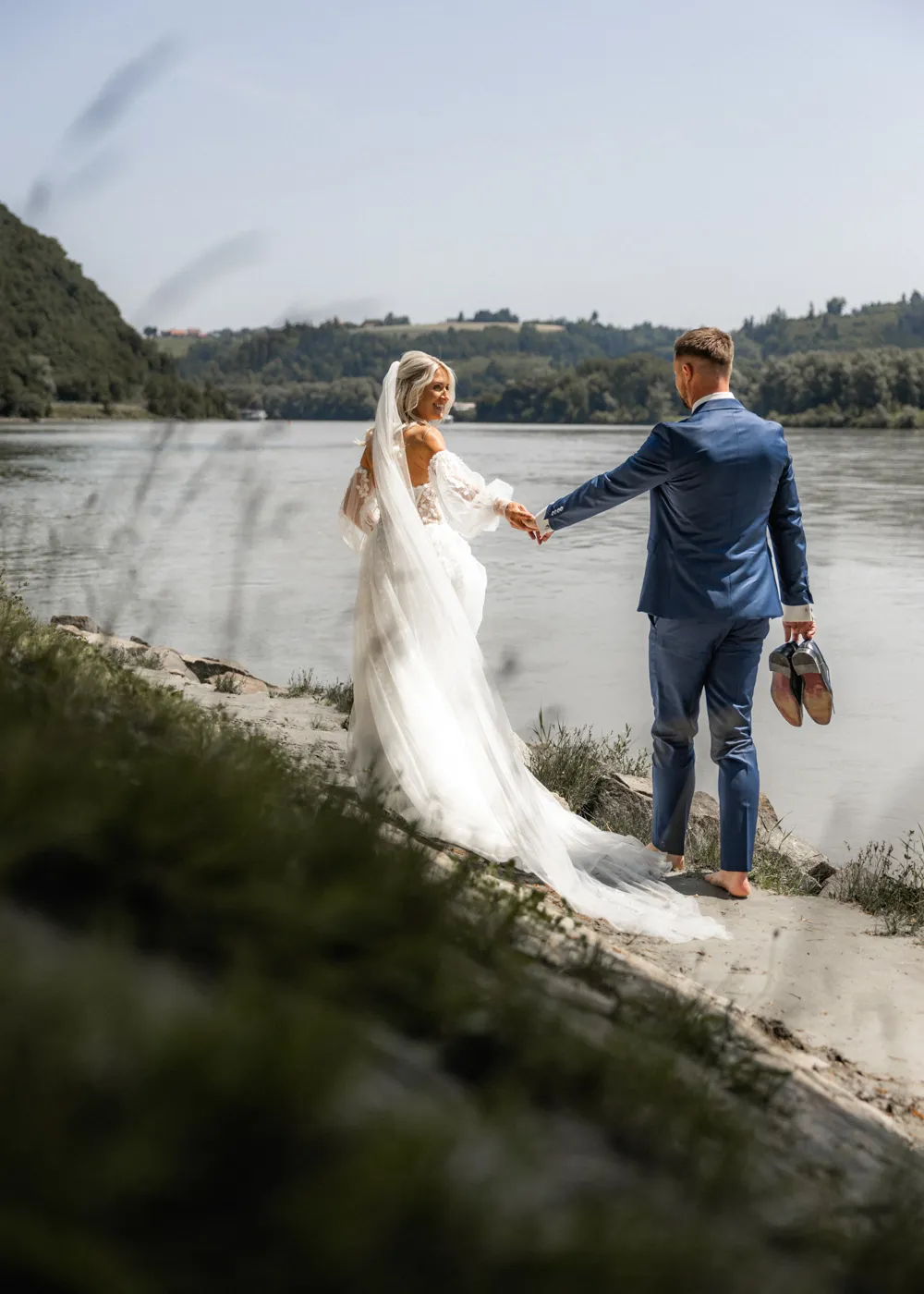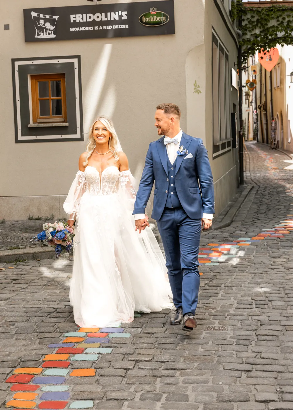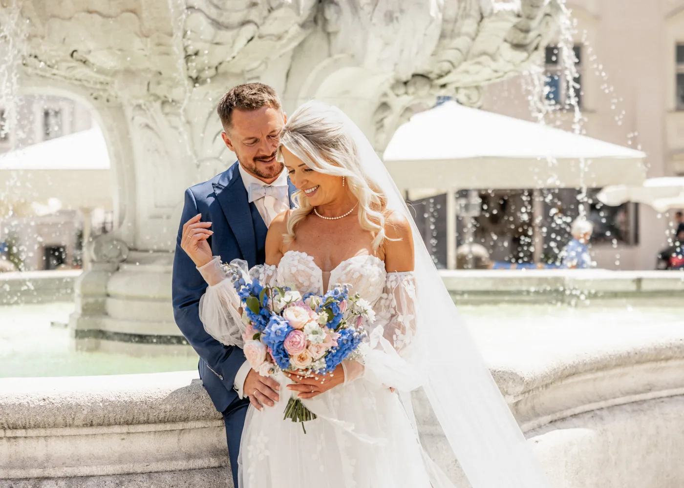 Nach der Fahrt auf dem Barefoot Boat zogen wir gemeinsam durch die malerischen Gassen der Altstadt, vorbei am Wittelsbacher Brunnen, über den Residenzplatz und durch kleine versteckte Ecken, die Passau so einzigartig machen. Diese Orte schaffen eine romantische Kulisse und geben jeder Hochzeitsgalerie einen zeitlosen, natürlichen Look – genau so, wie ich es als Hochzeitsfotograf Passau liebe.