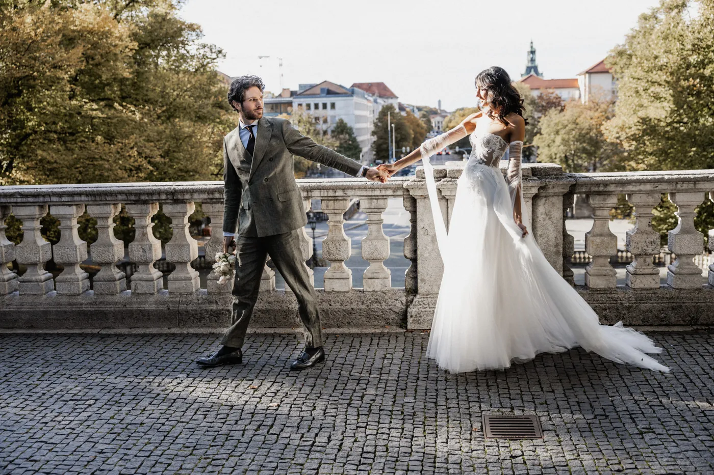 Als Hochzeitsfotograf München durfte ich Mari & Michael an einem ganz besonderen Ort begleiten: mitten im Herzen der bayerischen Landeshauptstadt, umgeben von urbanem Flair, eleganten Gebäuden und warmem Licht.