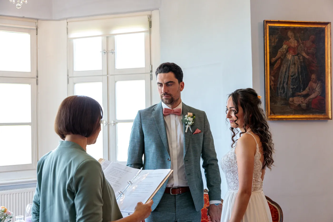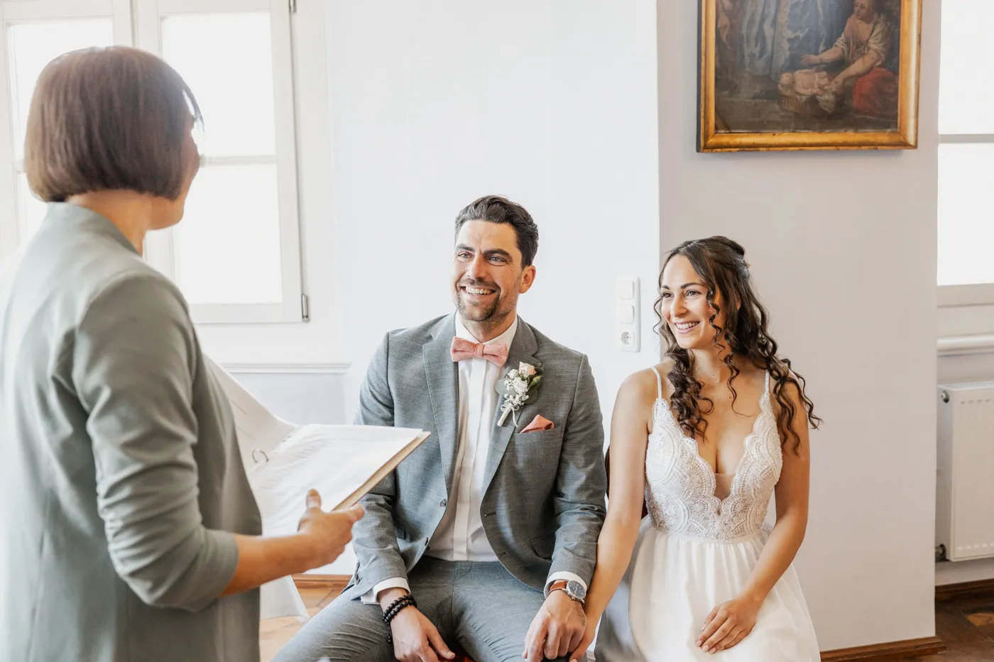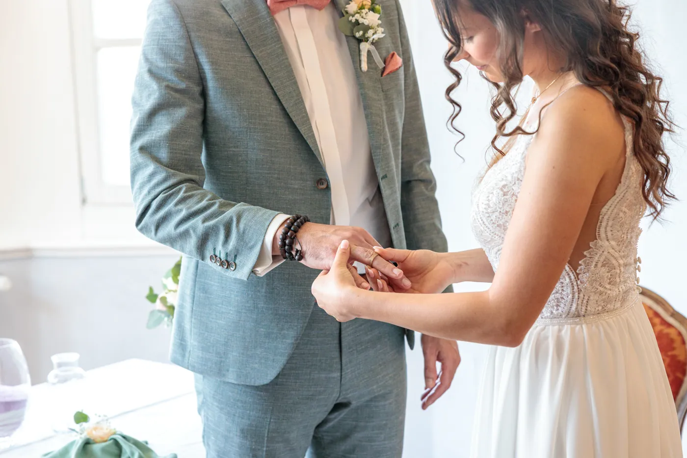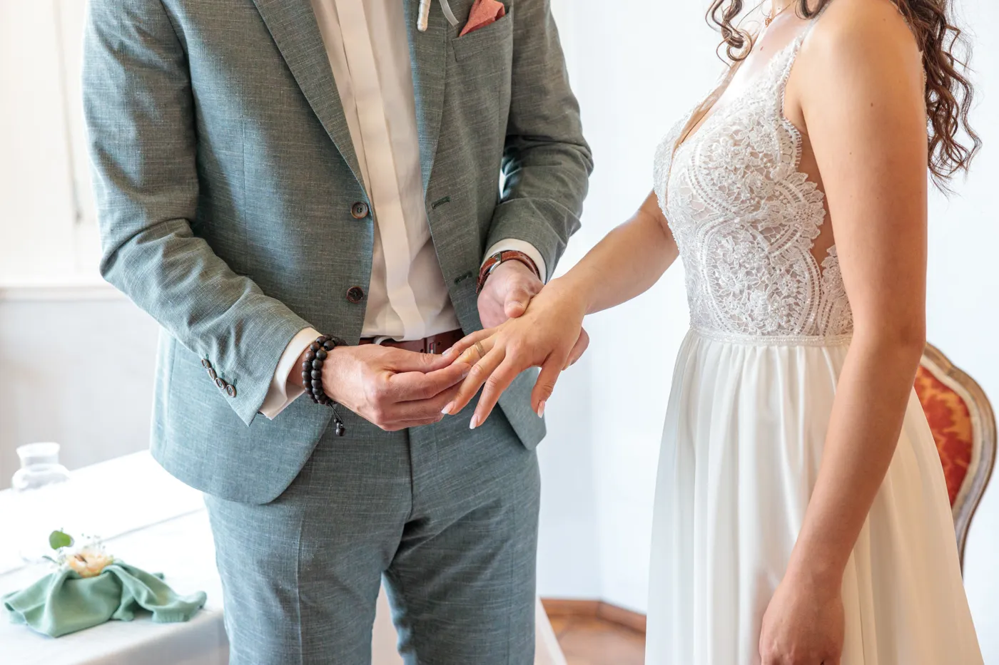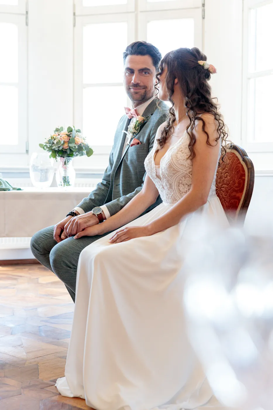 Die standesamtliche Trauung im Bischofszimmer beeindruckt durch warme Farben, historische Details und diese intime, elegante Atmosphäre. Für Sandra & Francis fühlte es sich an wie ein kleines, privates Märchen – ruhig, nahbar, voller echter Emotionen.