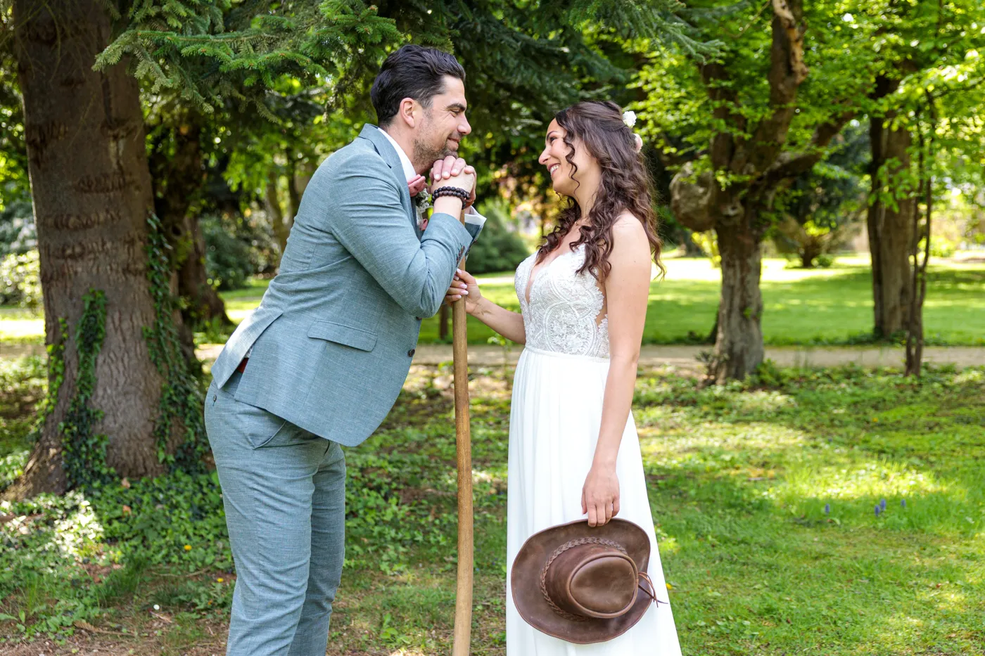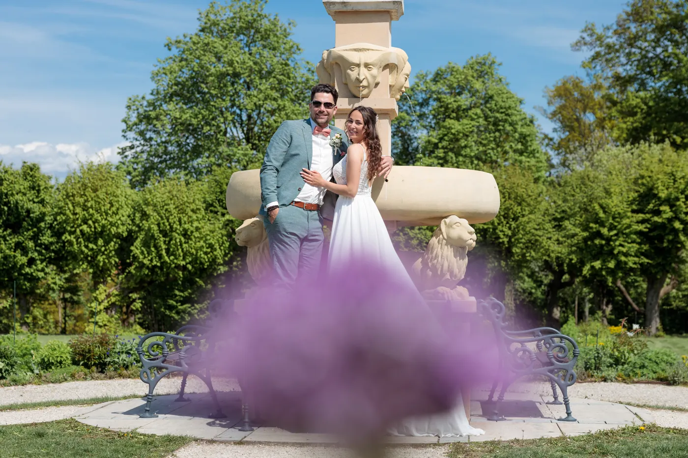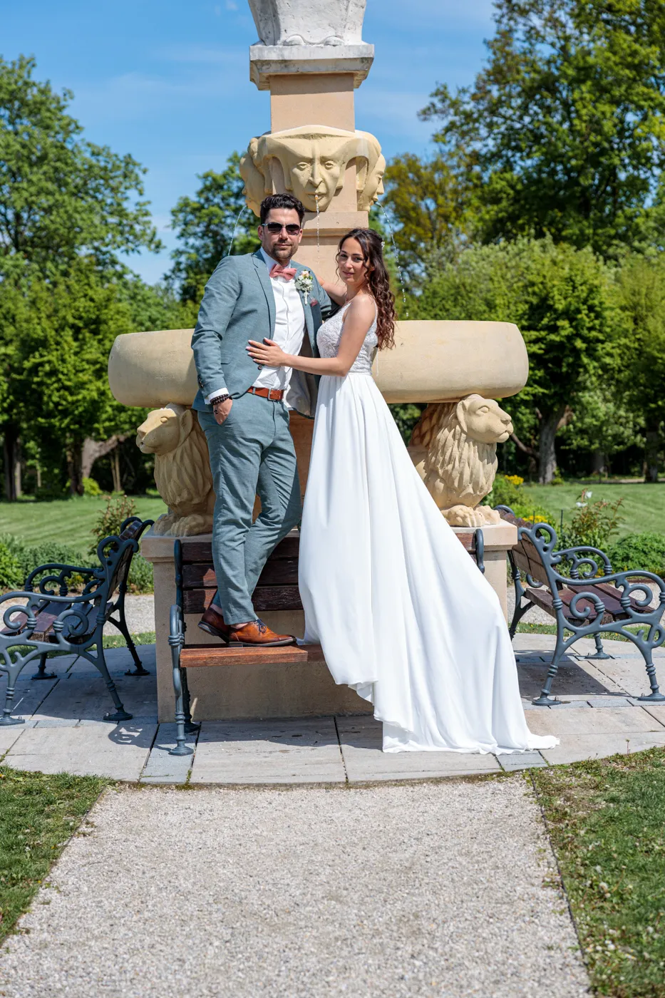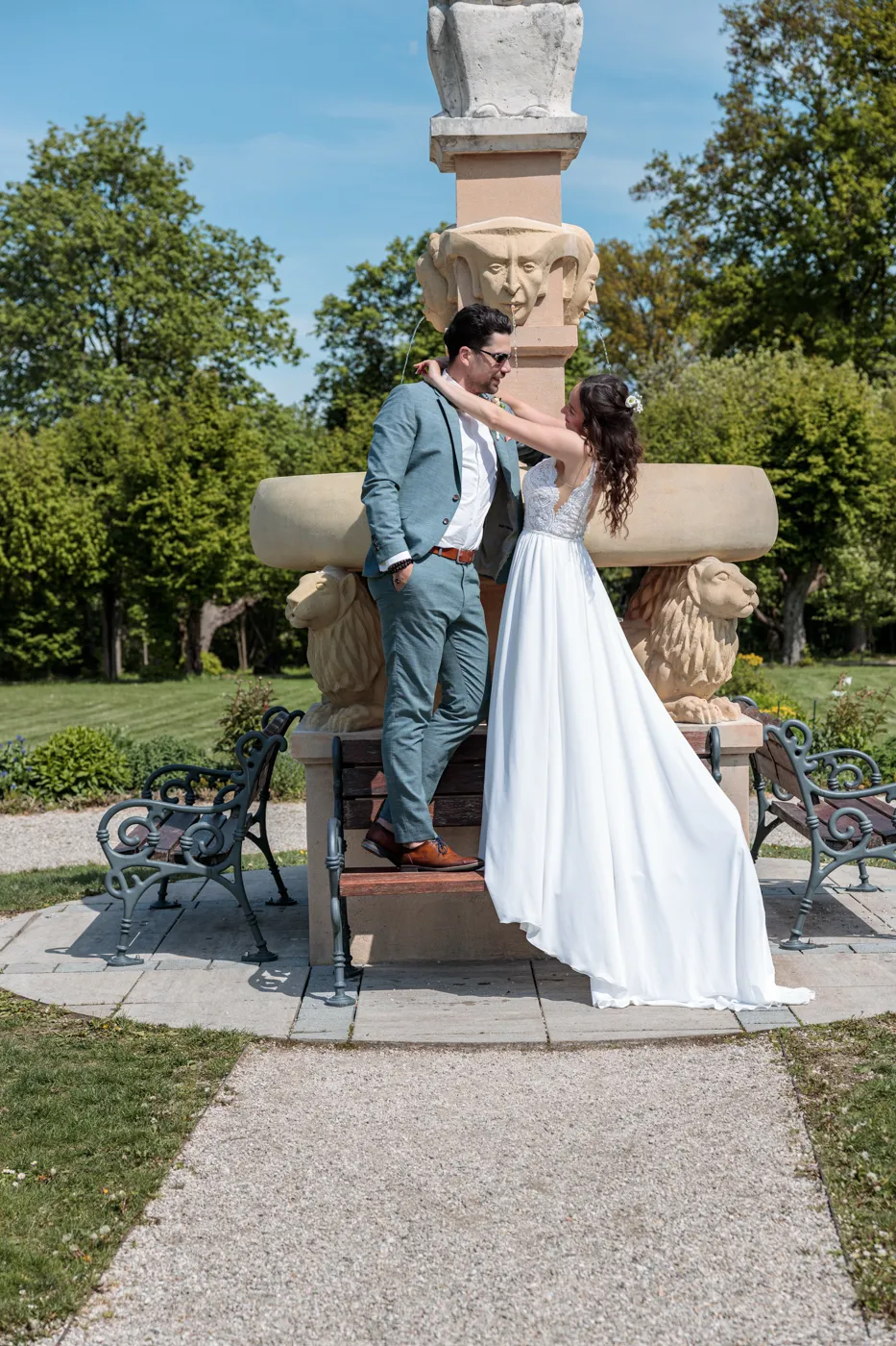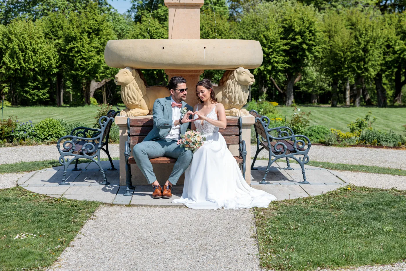 Nach der Trauung ging es für uns in den Herrengarten, einen gepflegten Barockgarten, der mit seinen Alleen, Blumenbeeten und dem sanften Licht einfach perfekt für natürliche Paaraufnahmen ist. Genau hier entstehen die Fotos, die man sich ein Leben lang ansieht: entspannt, vertraut, voller Gefühl.