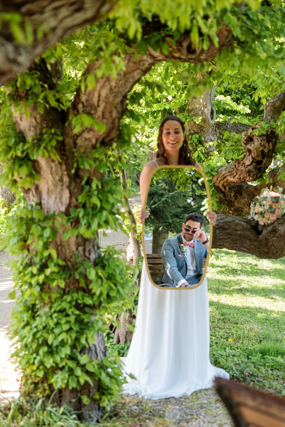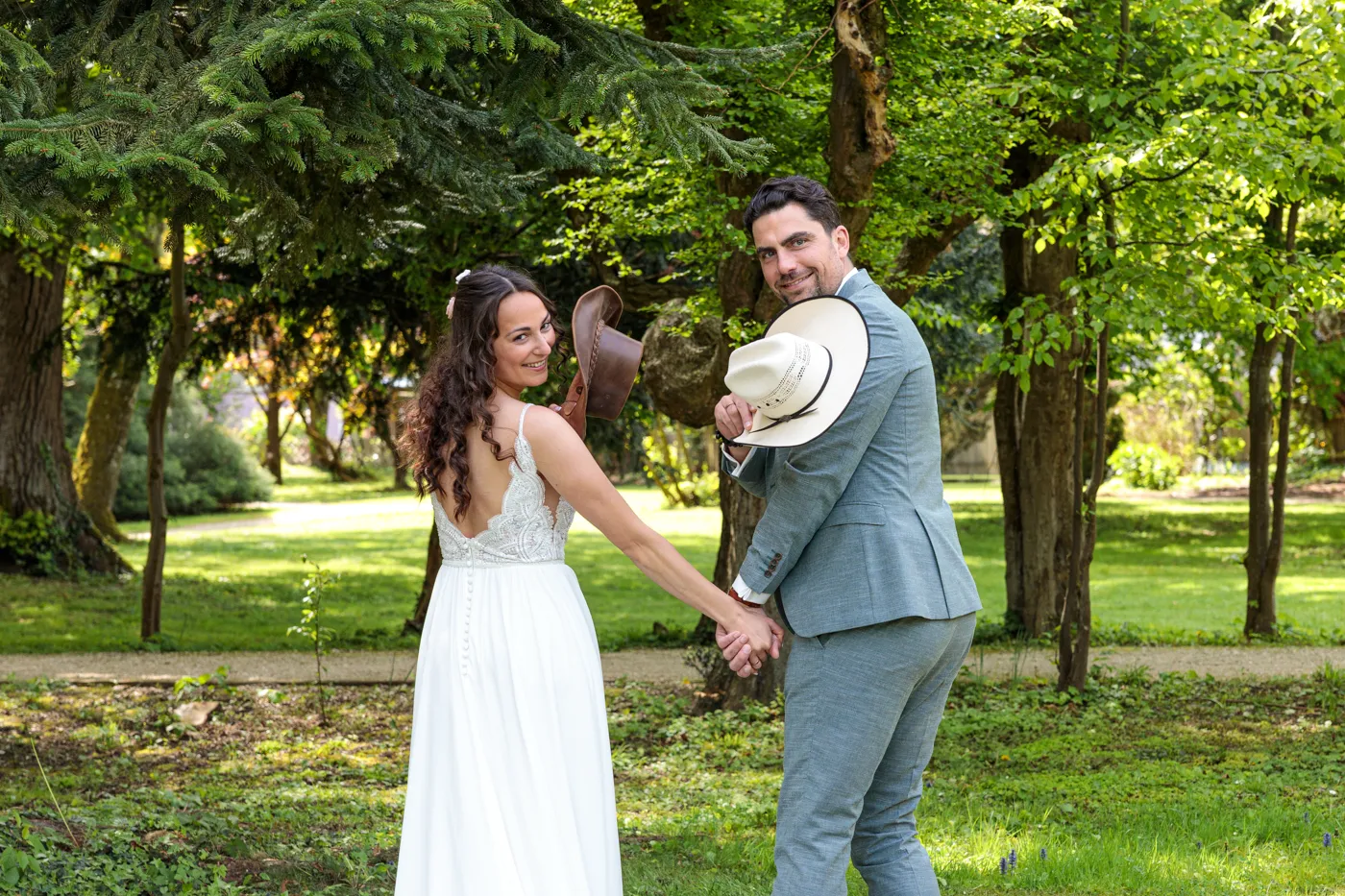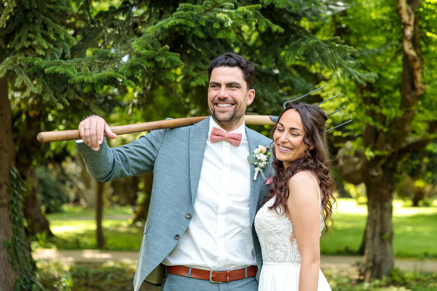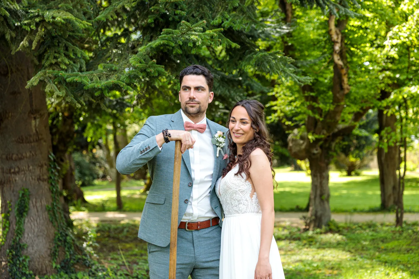 Nach der Trauung ging es für uns in den Herrengarten, einen gepflegten Barockgarten, der mit seinen Alleen, Blumenbeeten und dem sanften Licht einfach perfekt für natürliche Paaraufnahmen ist. Genau hier entstehen die Fotos, die man sich ein Leben lang ansieht: entspannt, vertraut, voller Gefühl.