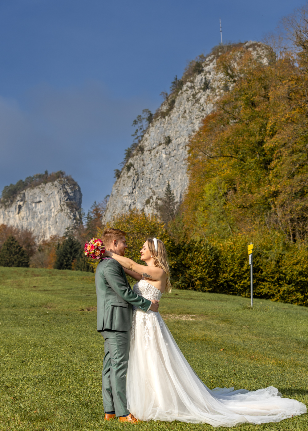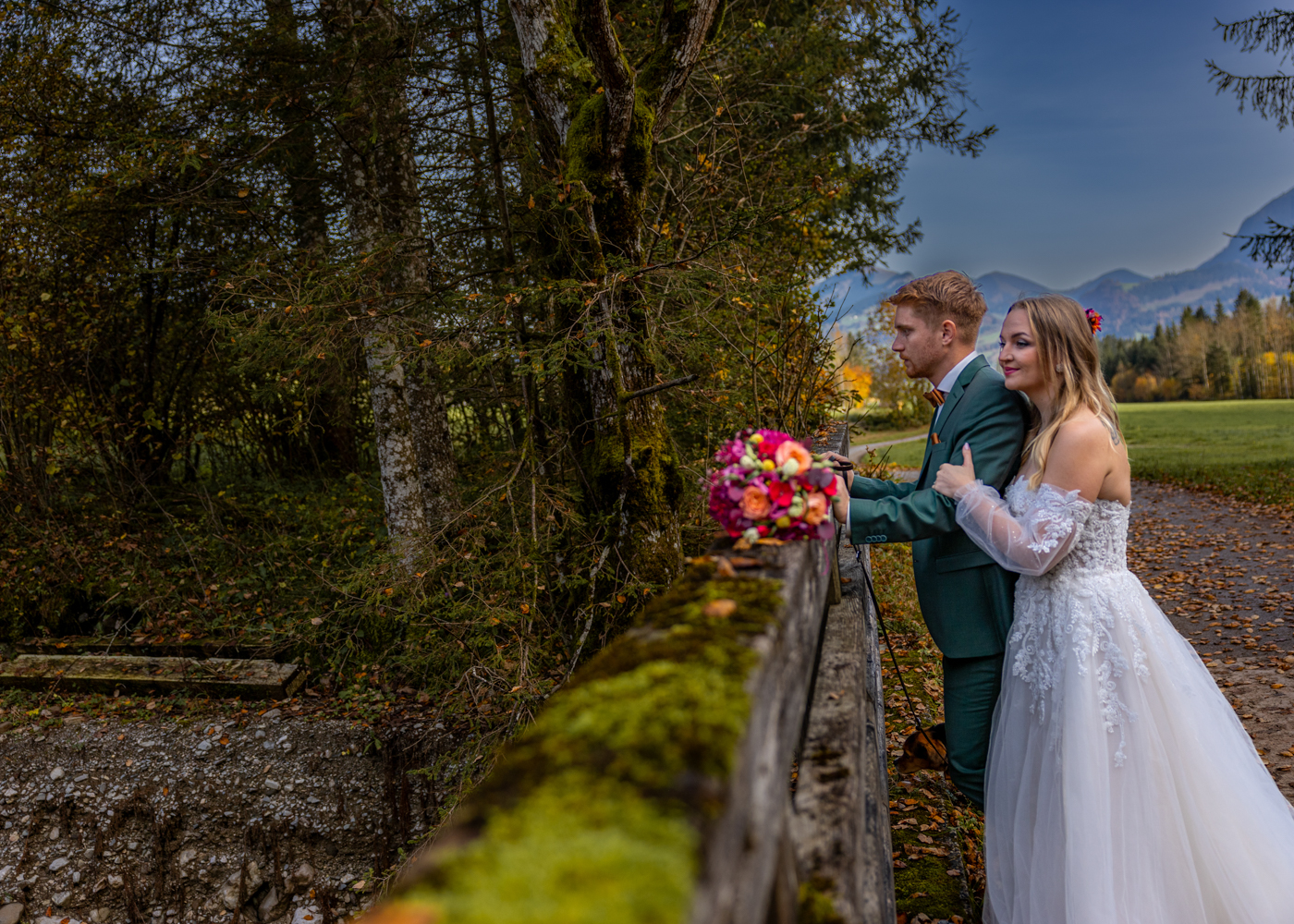 Als Hochzeitsfotograf Salzburg durfte ich Julia & Daniel an einem Ort begleiten, der sofort verzaubert: der geheimnisvollen Landschaft rund um den Kühschwalbweg bei Hallein. Zwischen wilden Bäumen, warmem Herbstlicht und der beeindruckenden Felskulisse entstand eine Reportage, die von Nähe, Emotion und einer tiefen Verbundenheit zur Natur erzählt.
